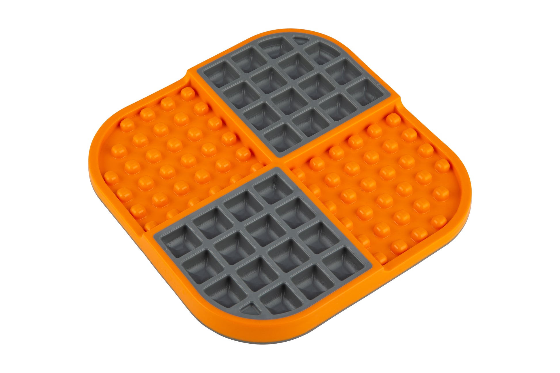 Ob Quark, Nassfutter, Kürbispüree oder Joghurt – alles darf auf die Matte. Zwei verschiedene Oberflächenstrukturen bringen Abwechslung ins Schleckerlebnis und fördern entspanntes, ruhiges Fressen. Perfekt, um Stress zu reduzieren und den Halloween-Tag lecker zu versüßen.
