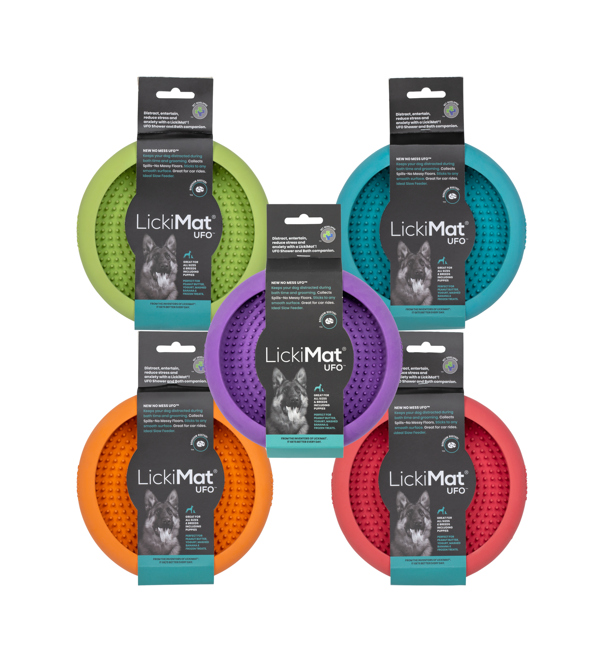 Die LickiMat UFO Schleckmatte ist der ideale Begleiter für unterwegs oder beim Baden! Dank der starken Saugnäpfe haftet sie sicher an glatten Flächen – z. B. Fliesen, Badewannen oder Fenstern. So bleibt dein Hund beschäftigt, während du ihn badest oder unterwegs etwas Ruhe brauchst.